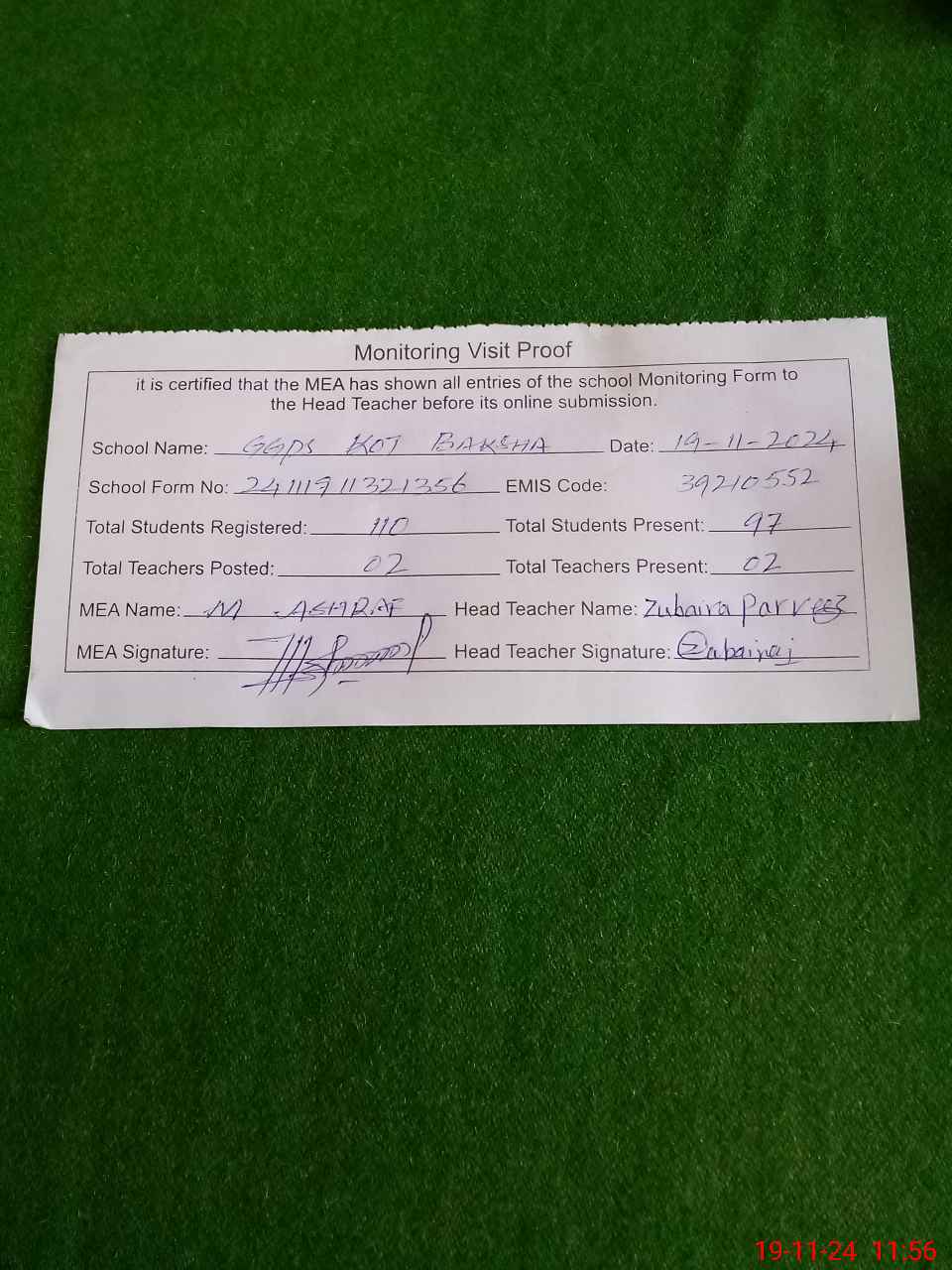 | EMIS Code: 39210552 | Name of School: GGPS KOT BAKHSHA | |||