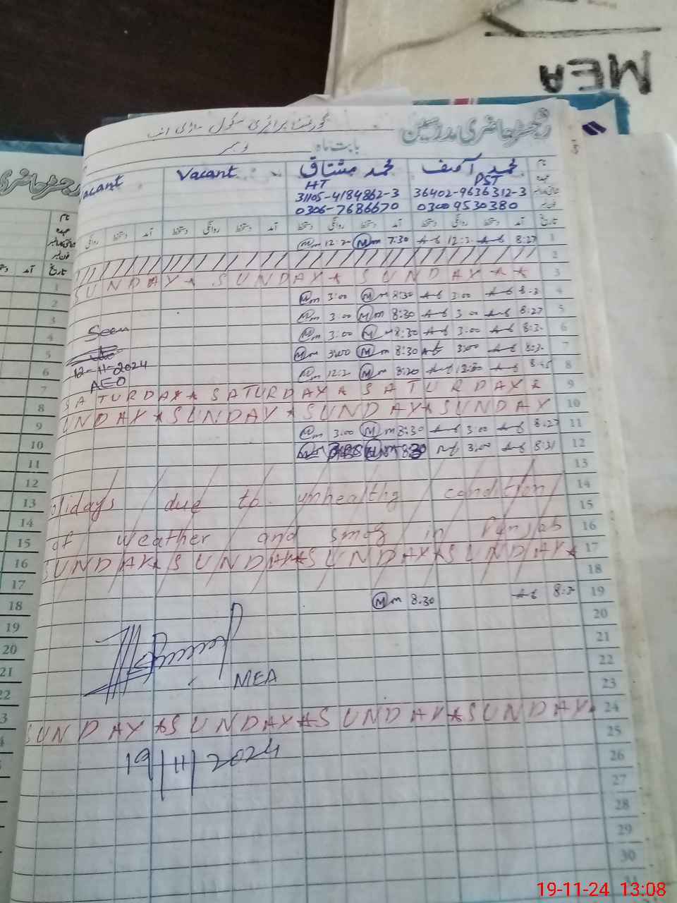 | Name: MU**** Mu**** Designation: (School Headmaster's/Headmistress's) PST Phone/Cell Number: 03**** |