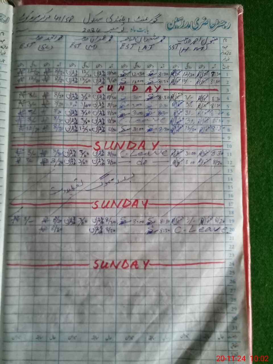 | CNIC | Full Name | Designation | R/C | Absence During Last Calender Month |