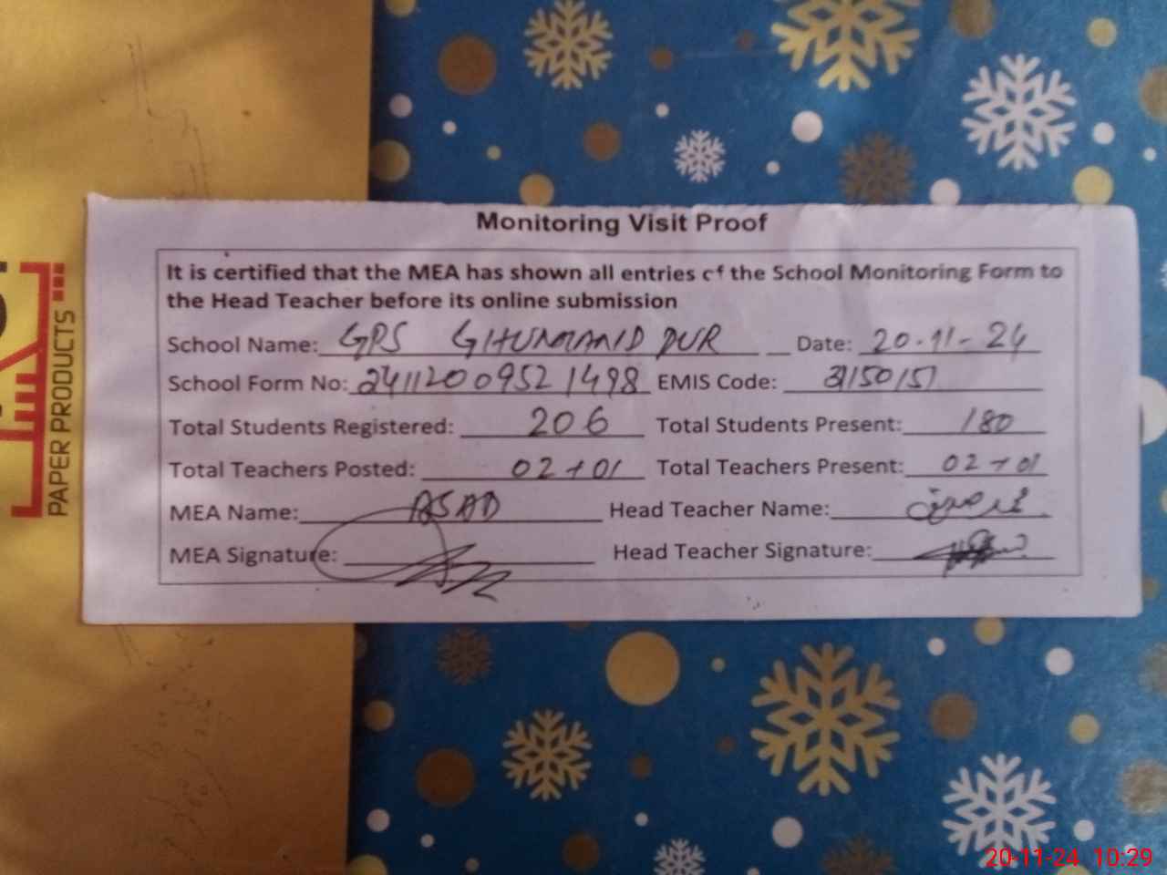 | EMIS Code: 31150151 | Name of School: GPS GHAMANDPUR | |||
