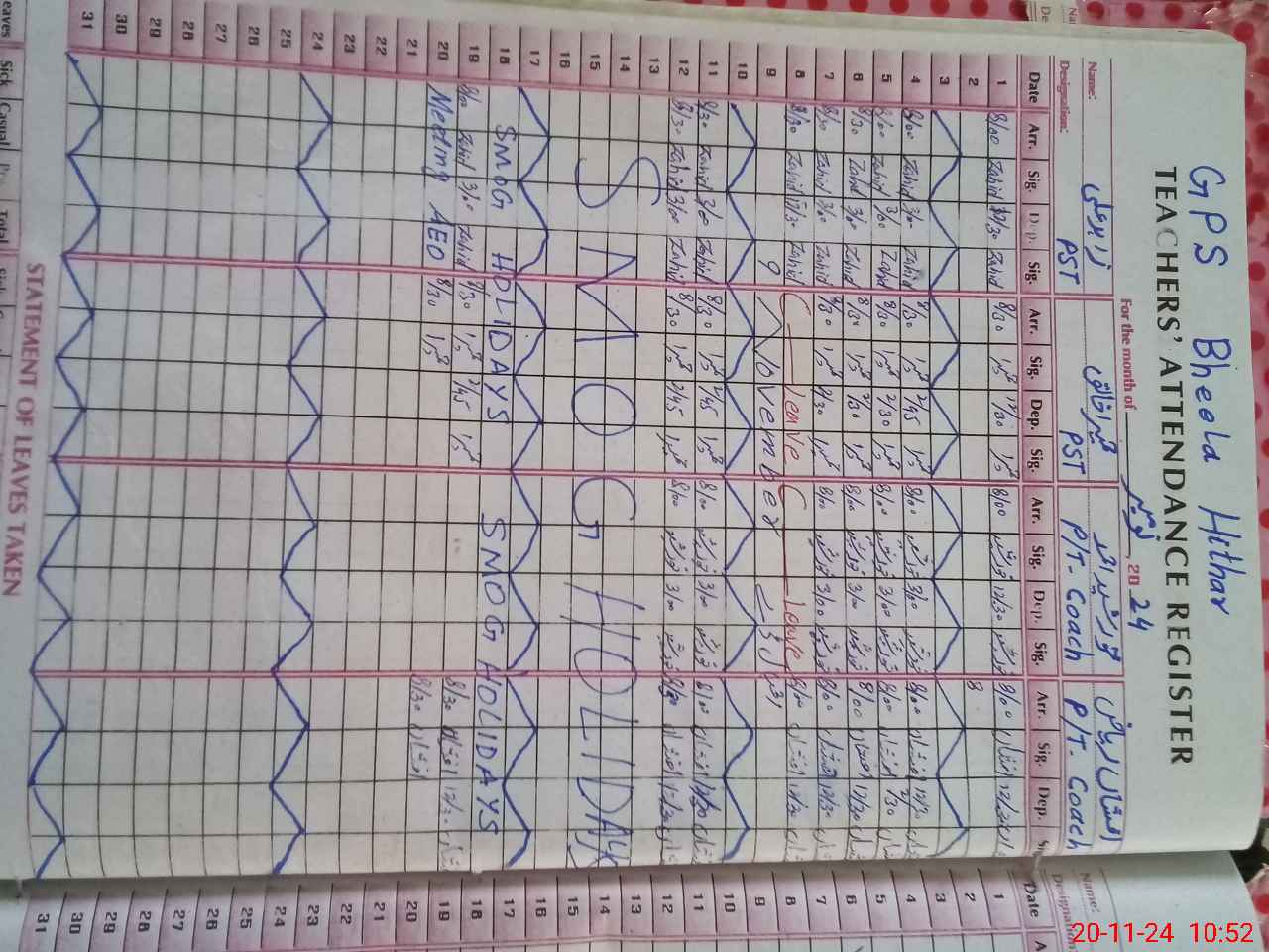 | CNIC | Full Name | Designation | R/C | Absence During Last Calender Month |