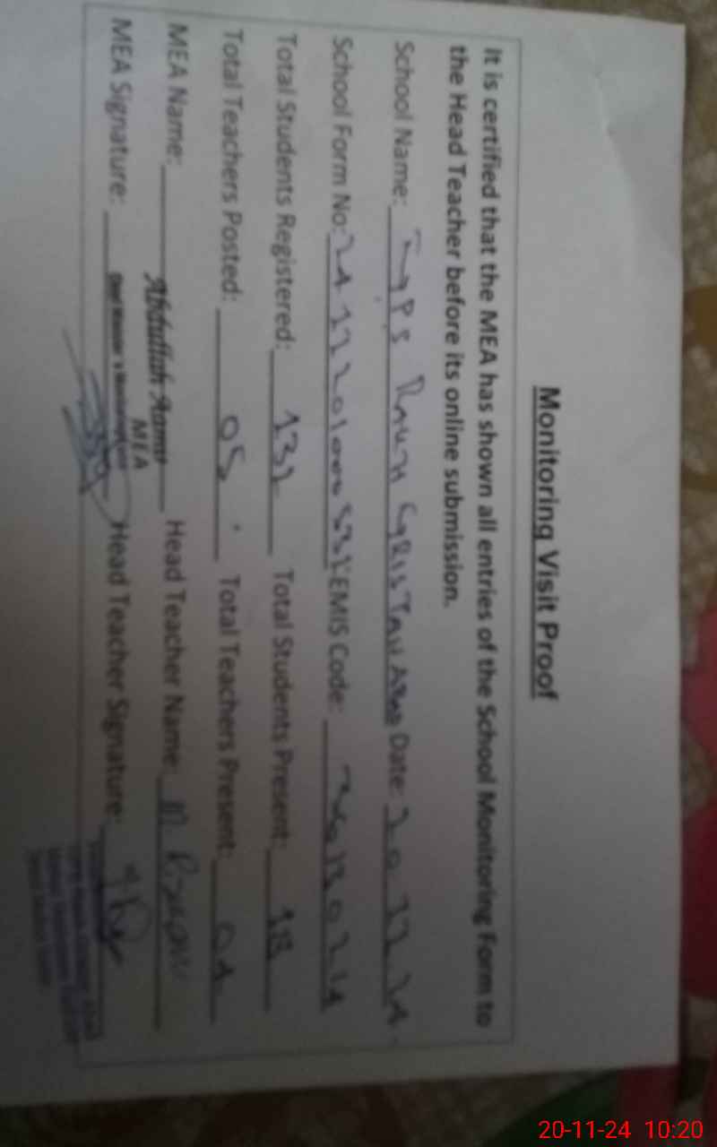 | EMIS Code: 36130214 | Name of School: GPS RAKH GRISTAN ABAD MAKHDUM RASHEED MULTAN | |||