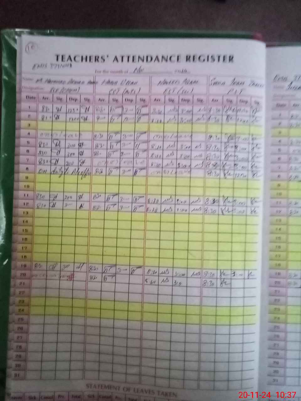 | Leave | Duty | Absent | Maternity | Medical | Ex- Pak |