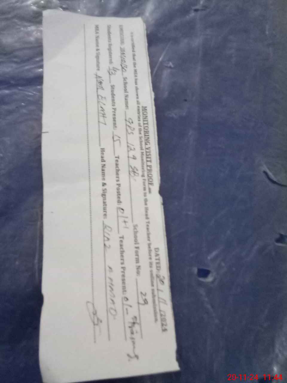 | Attendance Register | Head Teacher | MEA with School | Visit Proof |
