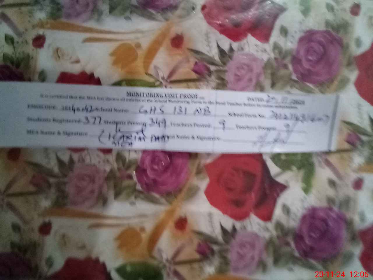 | EMIS Code: 38440042 | Name of School: GHS CHAK NO.131 NB | |||