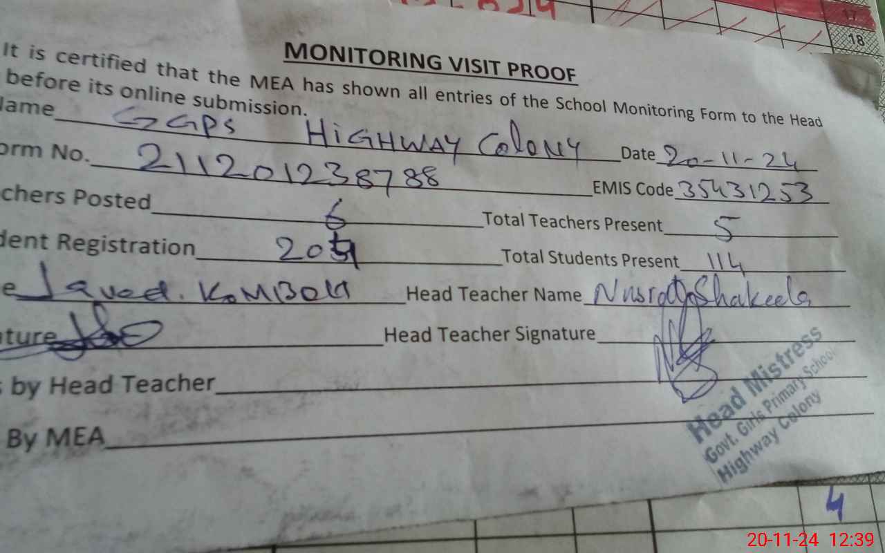 | EMIS Code: 35431253 | Name of School: GGPS HIGHWAY COLONY | |||
