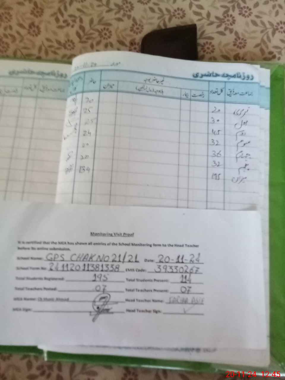 | EMIS Code: 39330267 | Name of School: GPS CHAK 21 2L | |||