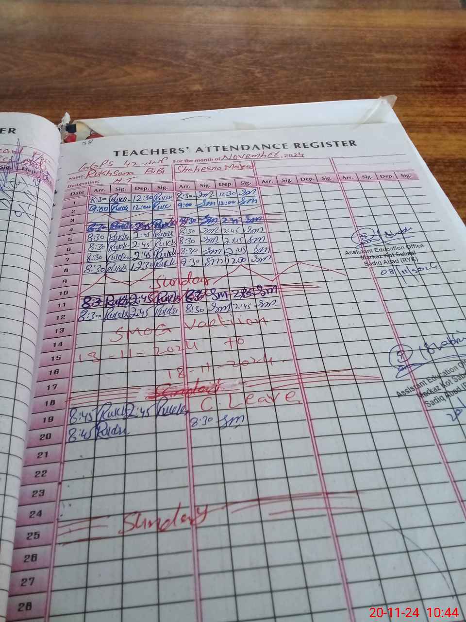 | Monitoring Date: 20-11-2024 | Start Time: 20-11-2024 10:42 AM | End Time: 20-11-2024 11:04 AM | Name of MEA: Mu**** Ak**** Ba**** | |