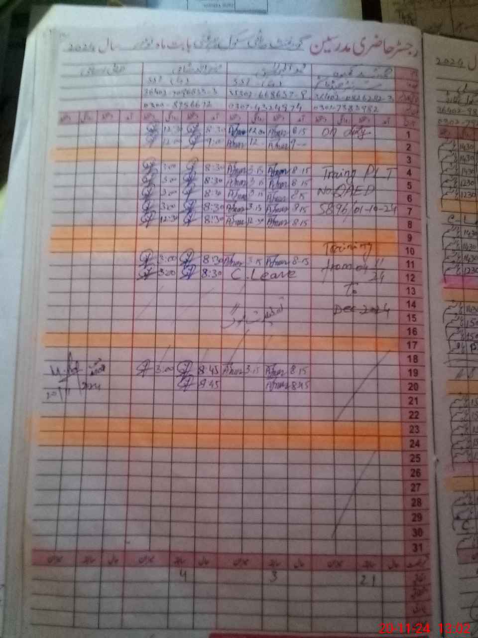 | CNIC | Full Name | Designation | R/C | Absence During Last Calender Month |