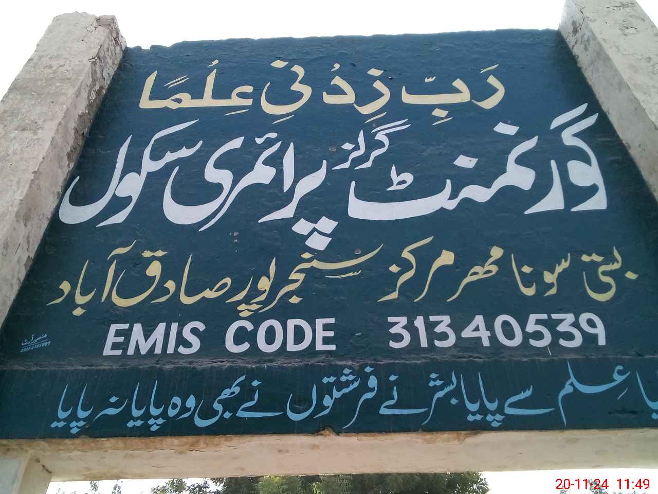 | District: RAHIMYAR KHAN | Tehsil: SADIQABAD | Markaz: SANJAR PUR - FEMALE | Level: Primary | |