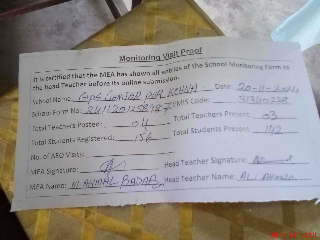 | EMIS Code: 31340228 | Name of School: GPS SANJAR PUR KHOHNA | |||