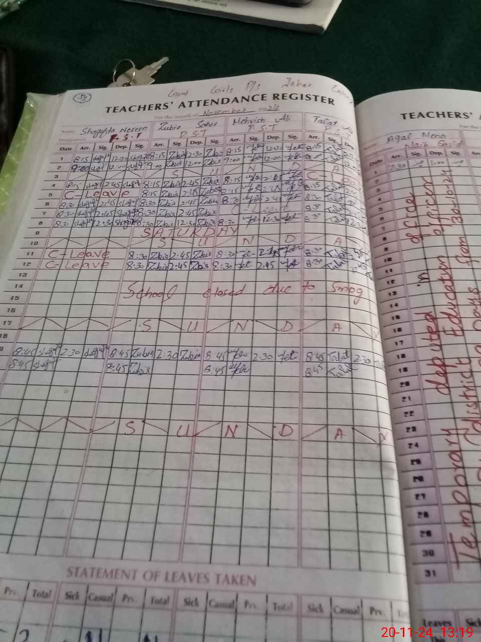 | Leave | Duty | Absent | Maternity | Medical | Ex- Pak |