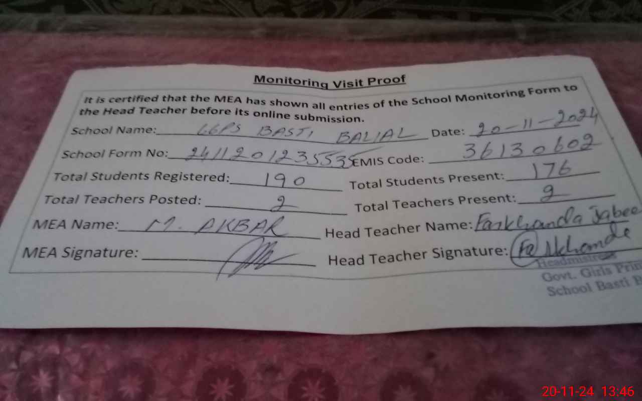| EMIS Code: 36130602 | Name of School: GGPS BASTI BALAIL | |||