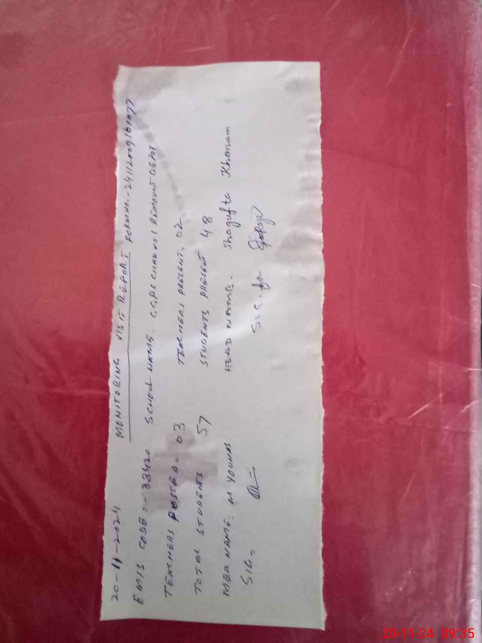 | Attendance Register | Head Teacher | MEA with School | Visit Proof |