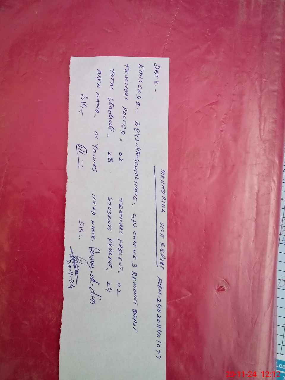 | Attendance Register | Head Teacher | MEA with School | Visit Proof |