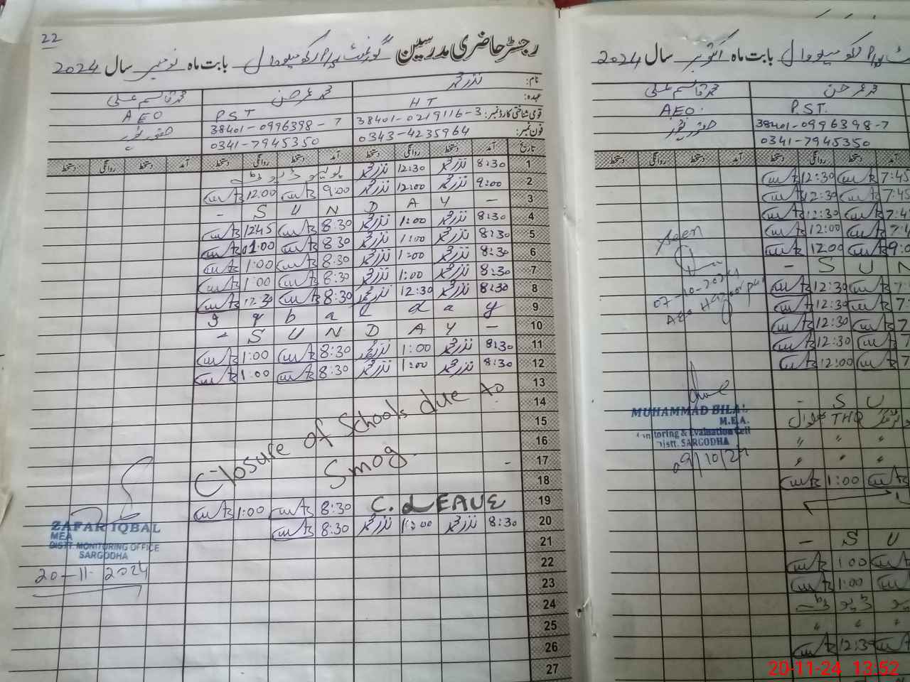 | Monitoring Date: 20-11-2024 | Start Time: 20-11-2024 01:13 PM | End Time: 20-11-2024 01:53 PM | Name of MEA: ZA**** IQ**** | |