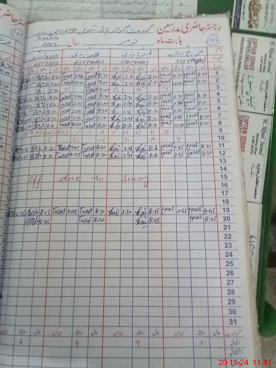 | No. of Students Present - Female | 24 | 0 | 16 | 21 | 16 | 26 | 22 | 32 | 22 | 37 | 29 | 33 | 26 | 304 | ||
