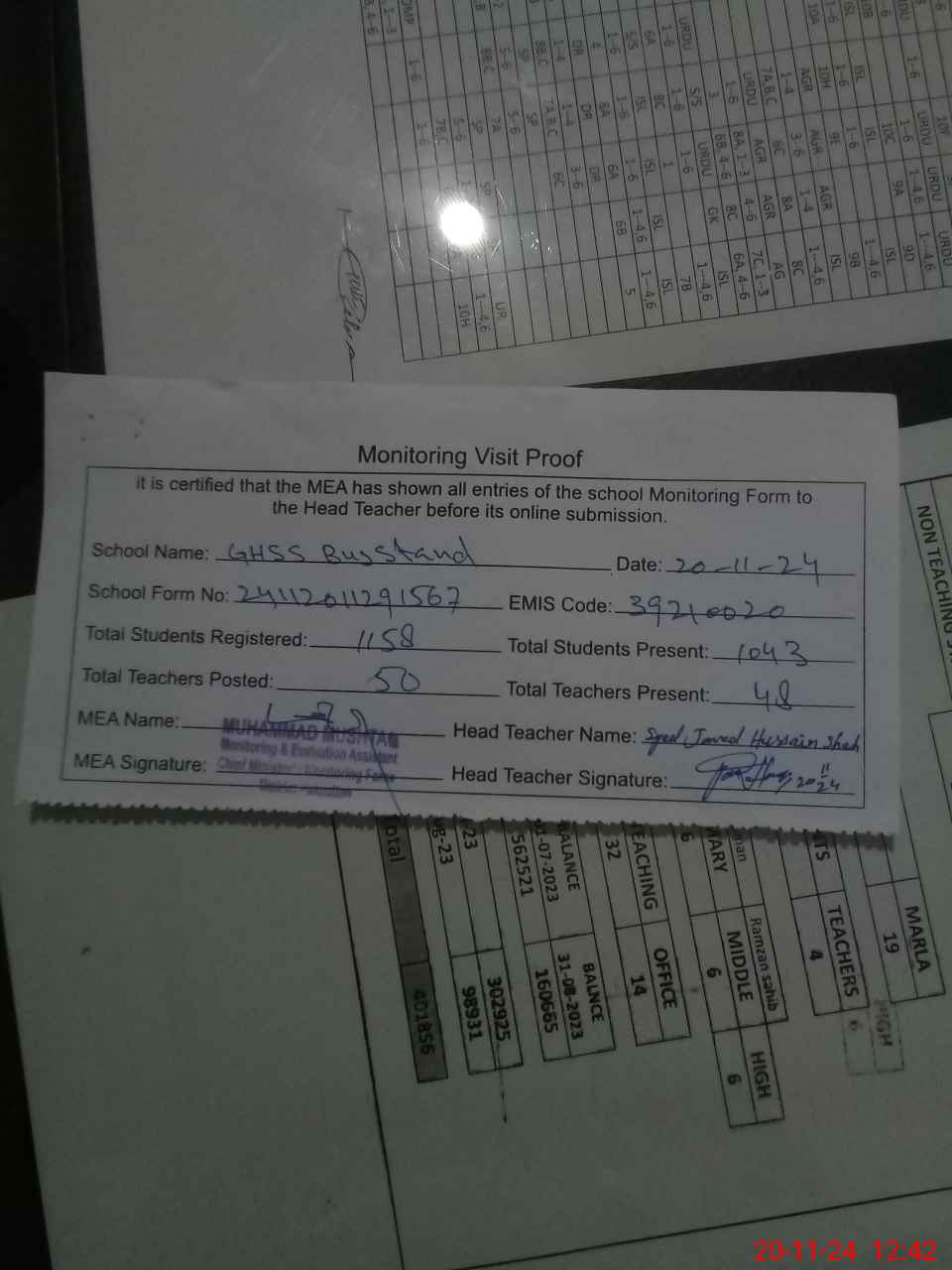| EMIS Code: 39210020 | Name of School: GHSS BUS STAND PAKPATTAN | |||