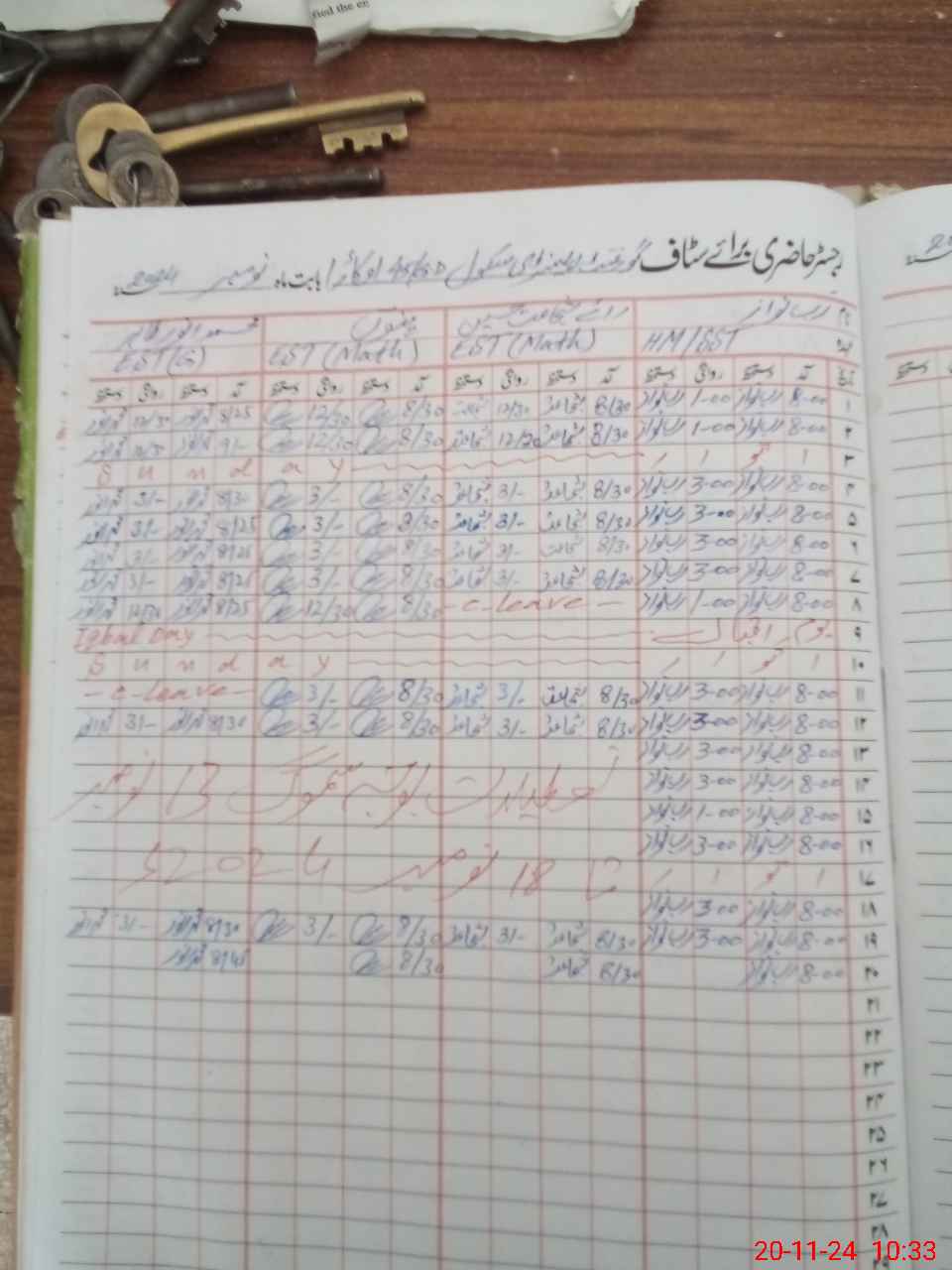 | Leave | Duty | Absent | Maternity | Medical | Ex- Pak |