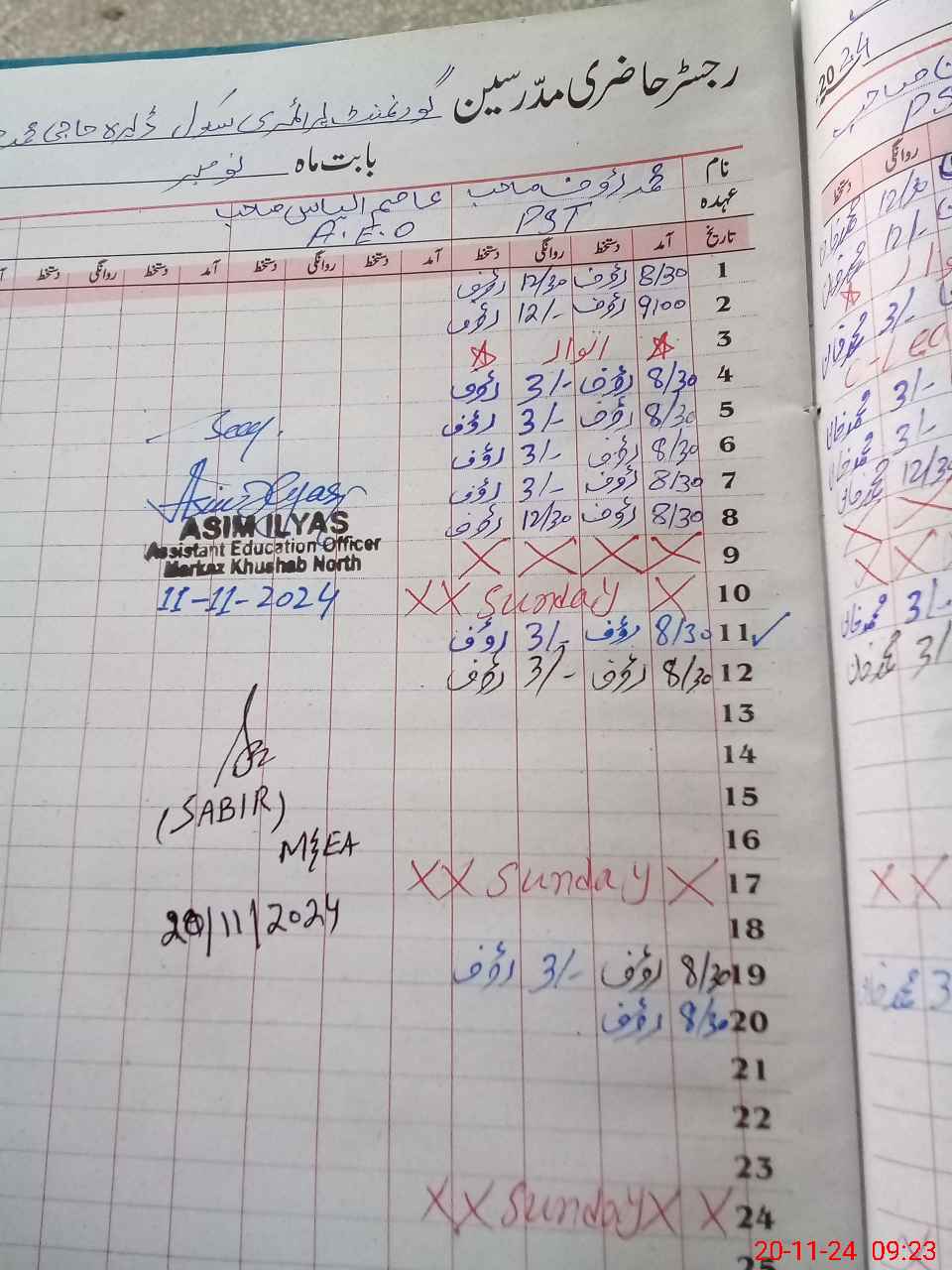 | Name: Wa**** Ab**** Designation: (School Headmaster's/Headmistress's) PST Phone/Cell Number: 03**** |