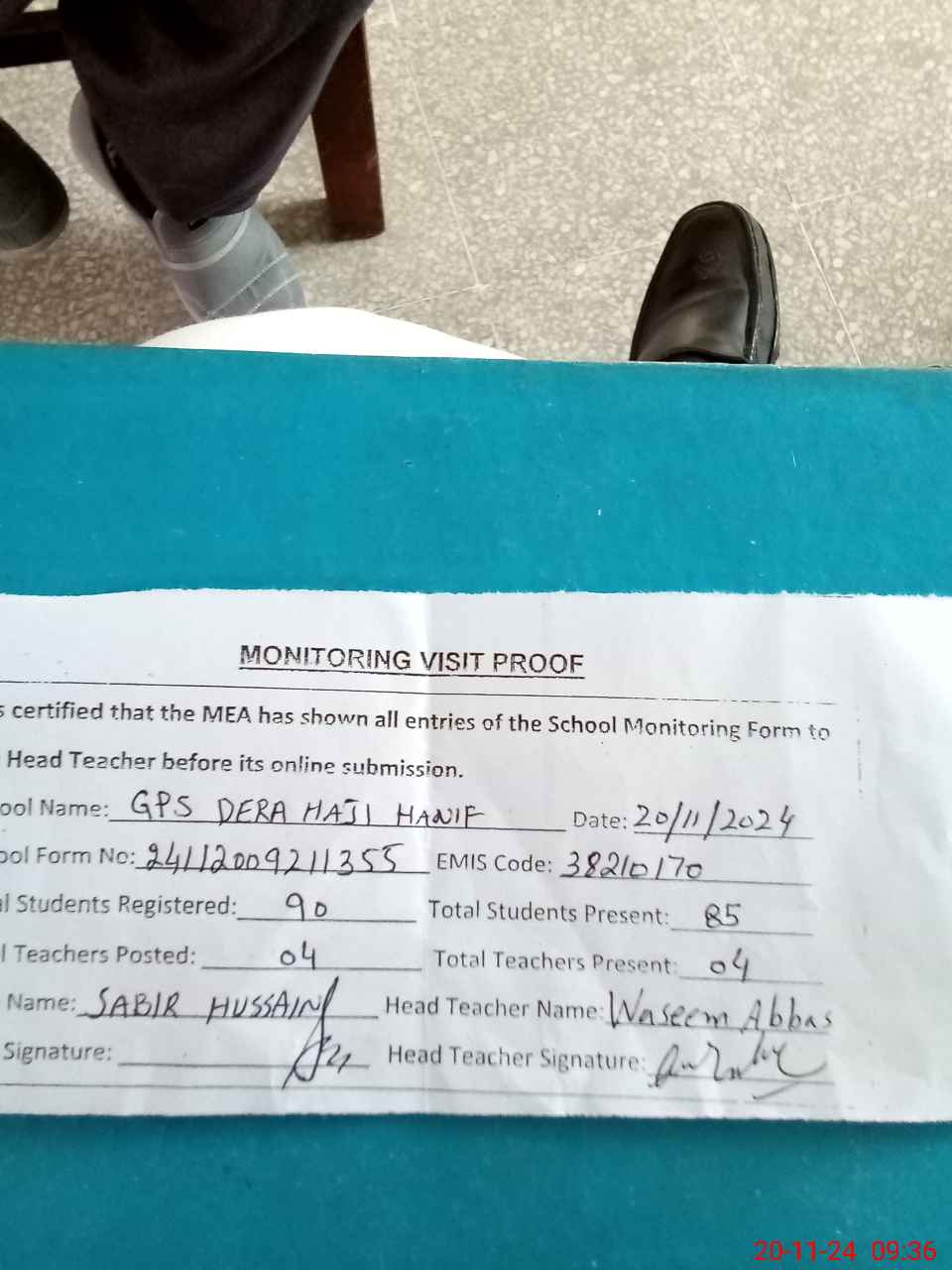 | Attendance Register | Head Teacher | MEA with School | Visit Proof |