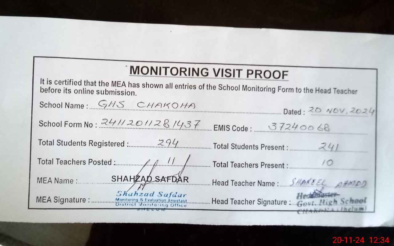 | EMIS Code: 37240068 | Name of School: GHS CHAKOHA | |||