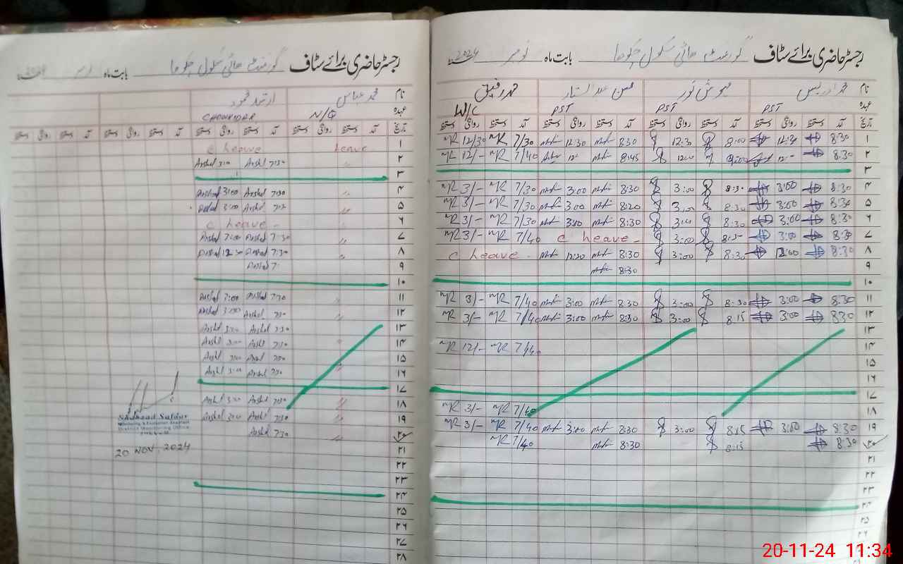 | CNIC | Full Name | Designation | R/C | Absence During Last Calender Month |