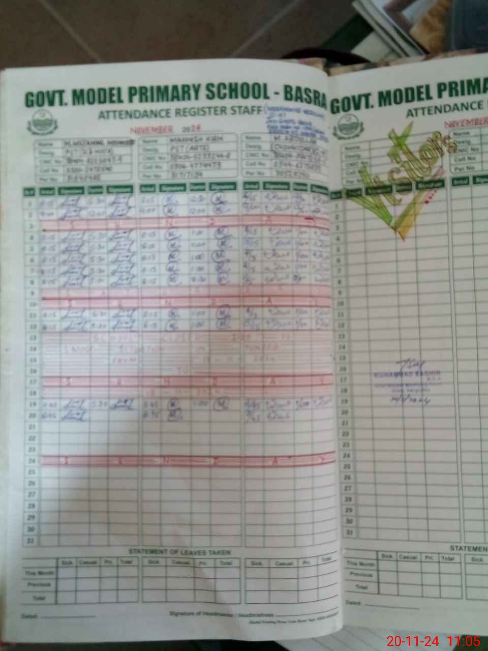 | CNIC | Full Name | Designation | R/C | Absence During Last Calender Month |