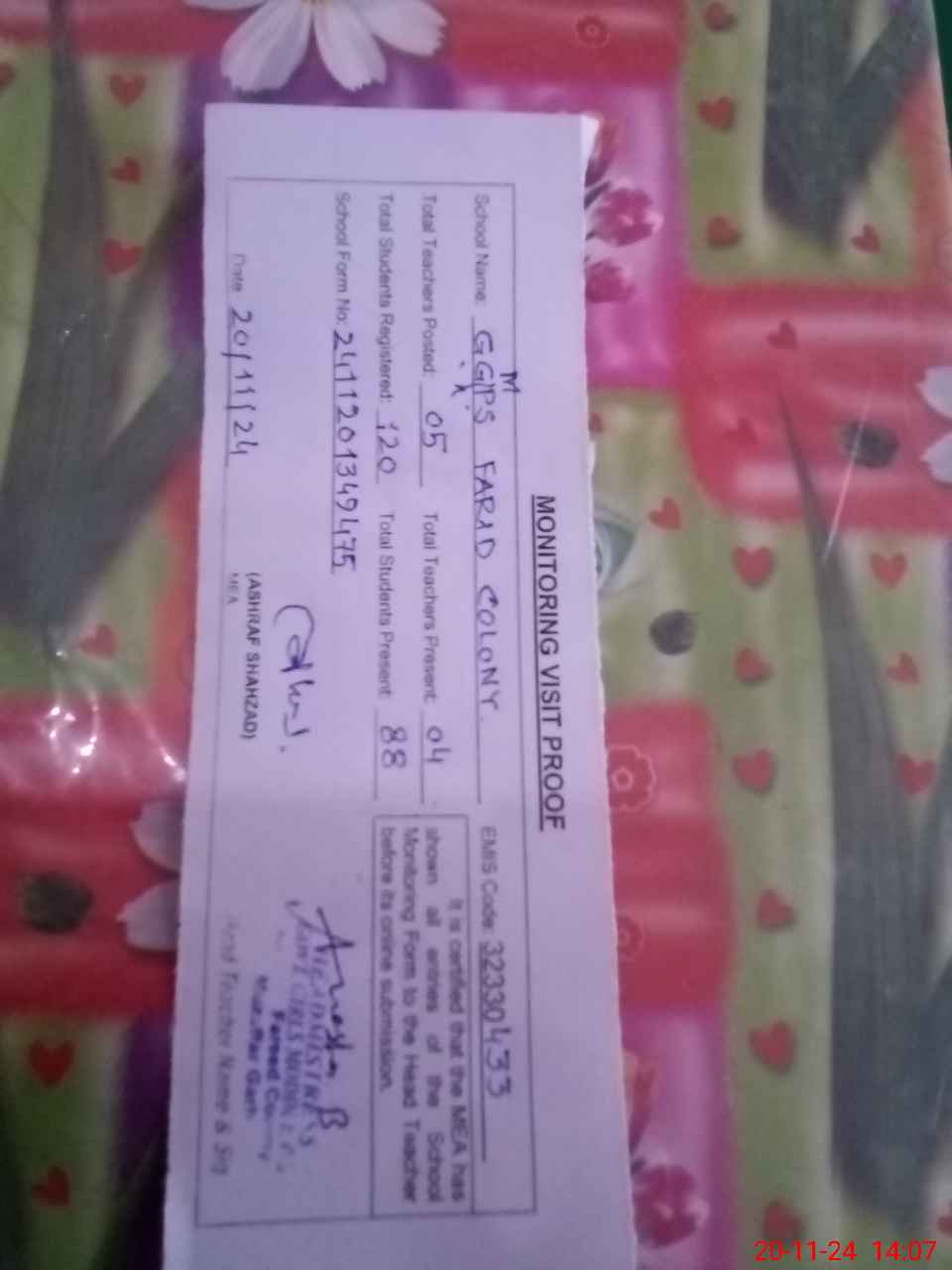 | EMIS Code: 32330433 | Name of School: GGMPS FARID COLONY | |||