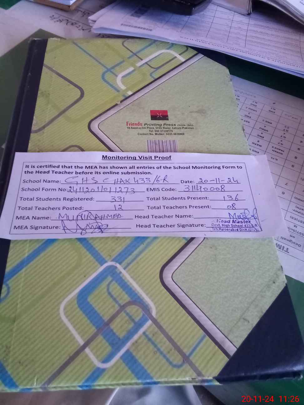 | EMIS Code: 31140008 | Name of School: GHS CHAK NO. 433/6-R | |||