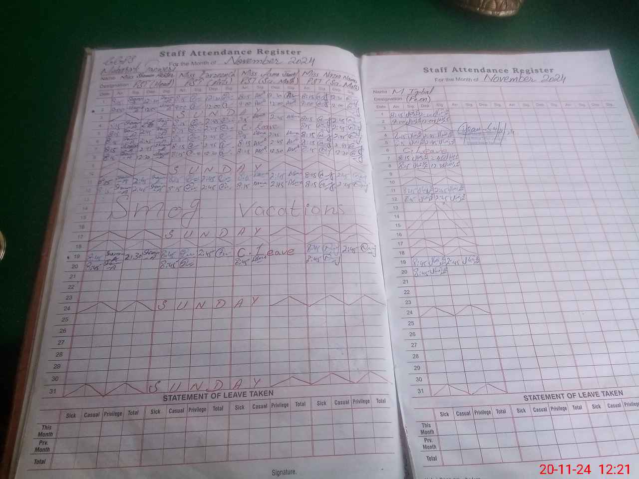 | Leave | Duty | Absent | Maternity | Medical | Ex- Pak |