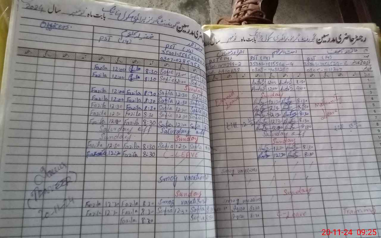| CNIC | Full Name | Designation | R/C | Absence During Last Calender Month |