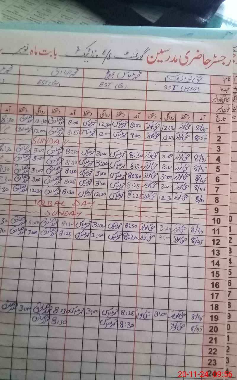 | Name: HA**** NA**** Designation: (School Headmaster's/Headmistress's) SST Headmaster Phone/Cell Number: 03**** |