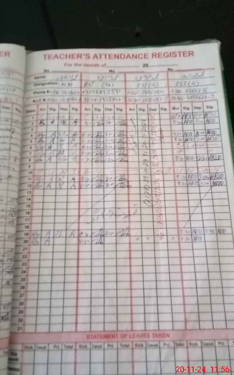 | CNIC | Full Name | Designation | R/C | Absence During Last Calender Month |