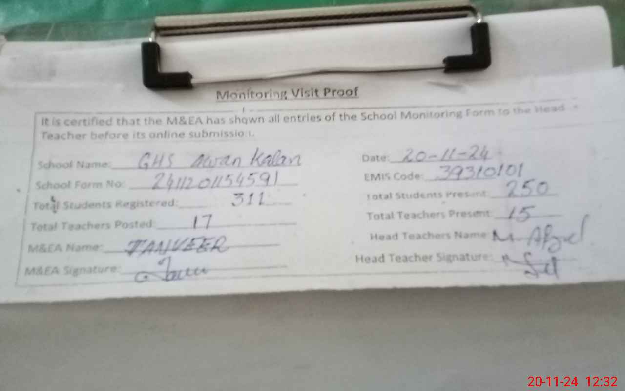 | EMIS Code: 39310101 | Name of School: GHS AWAN KALAN | |||