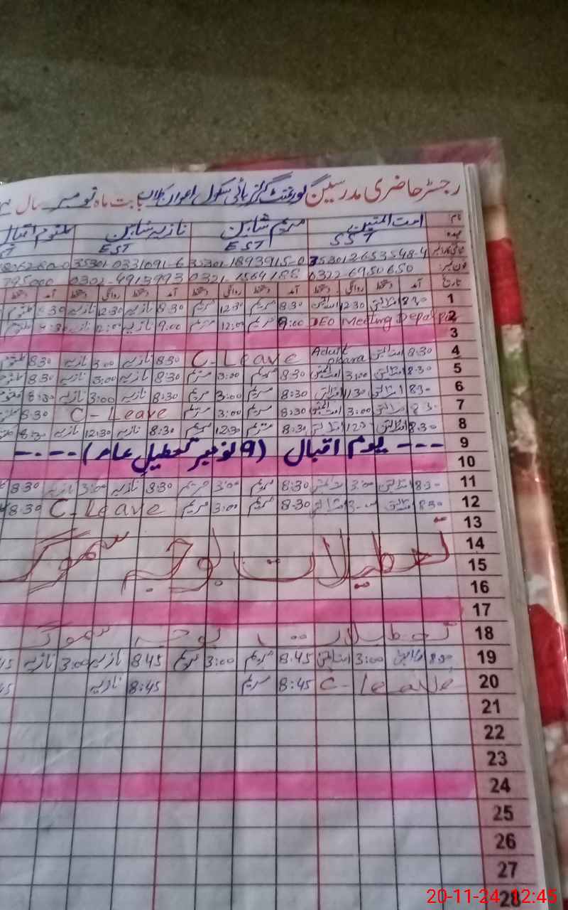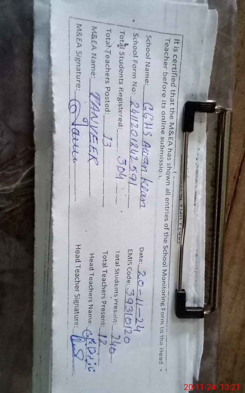 | EMIS Code: 39310120 | Name of School: GGHS AWAN KALAN | |||