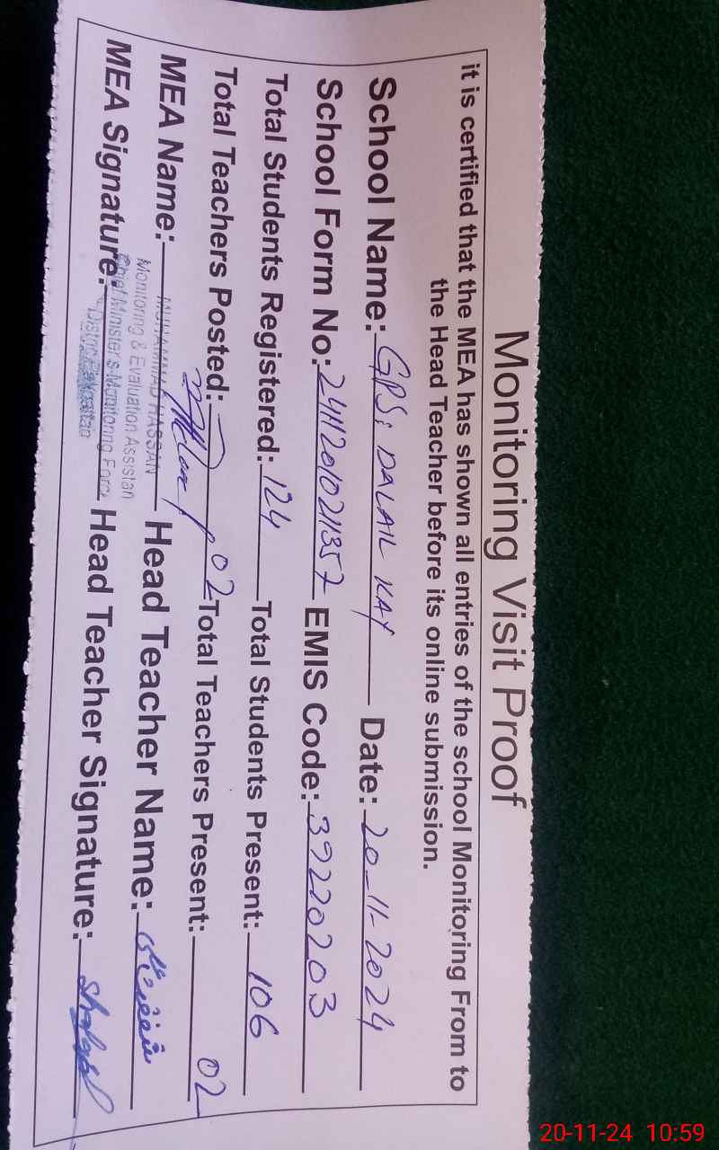 | EMIS Code: 39220203 | Name of School: GPS MOUZA DALAIL KAY NO 1 P/O 22/E.B | |||