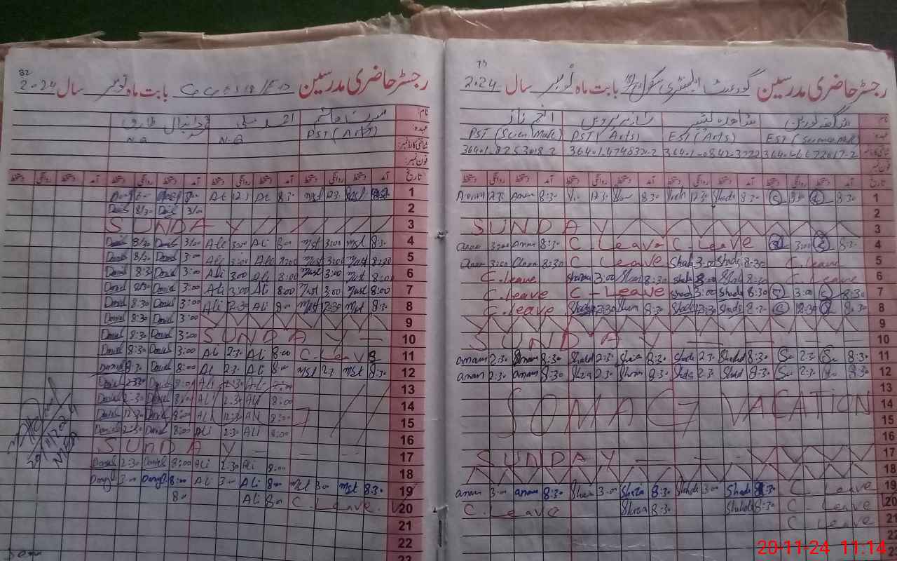 | CNIC | Full Name | Designation | R/C | Absence During Last Calender Month |
