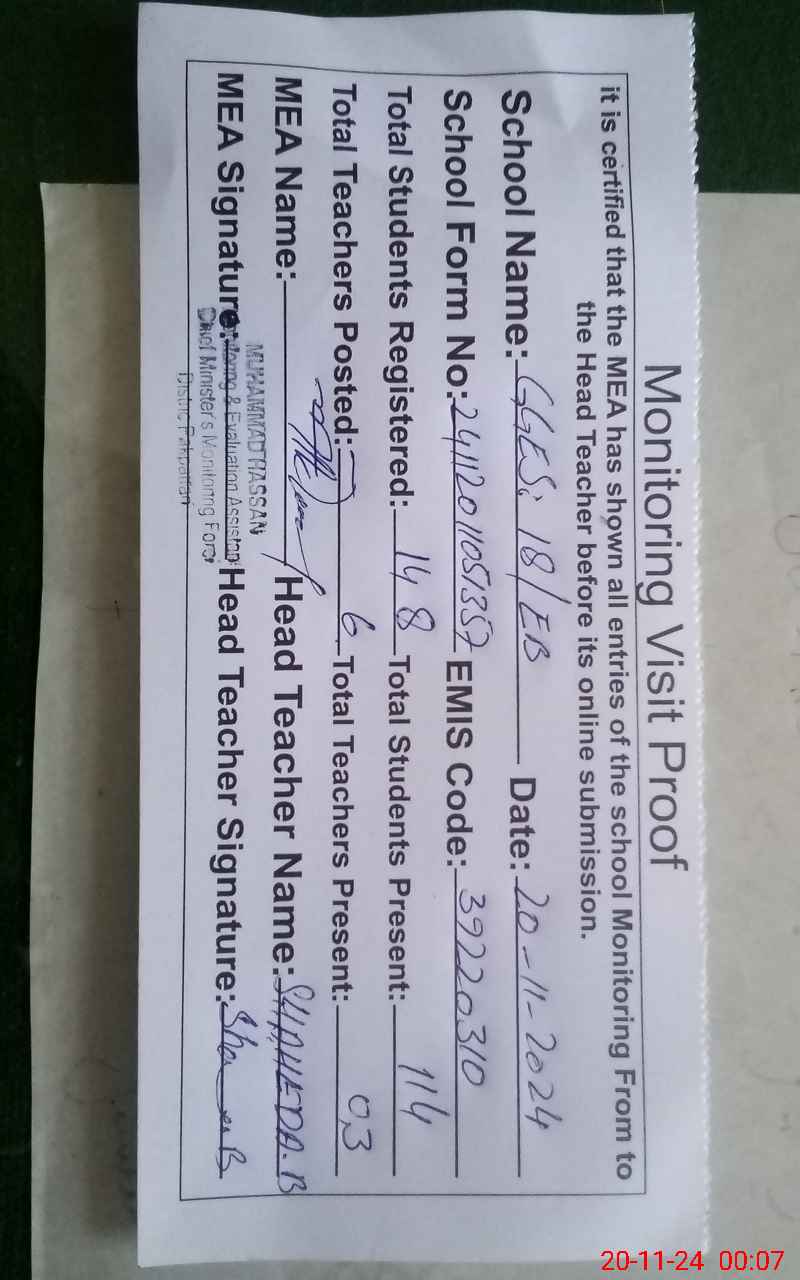 | EMIS Code: 39220310 | Name of School: GGES 18/EB | |||
