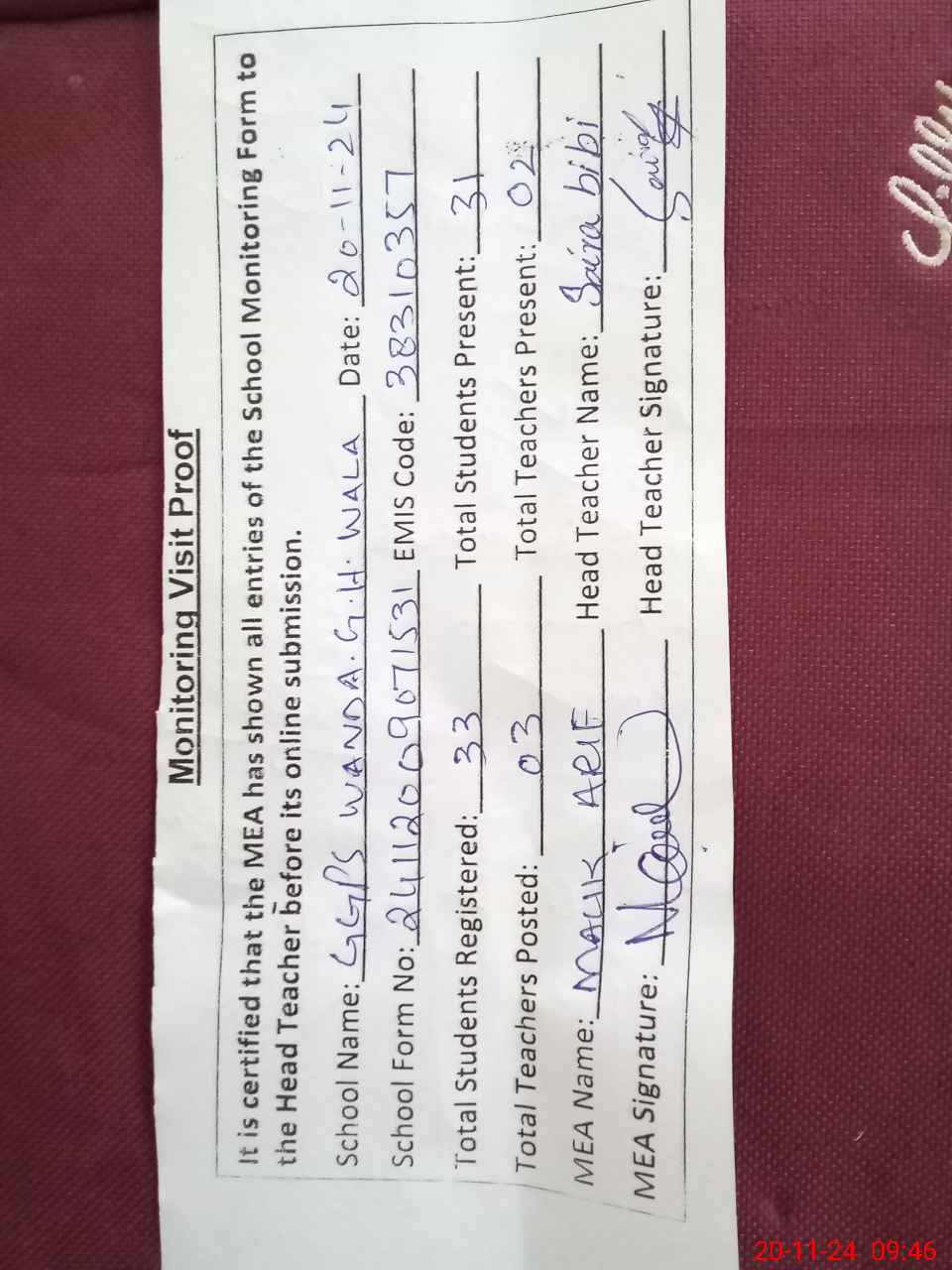 | EMIS Code: 38310357 | Name of School: GGPS WANDHA GHULAM HUSSAIN WALA | |||