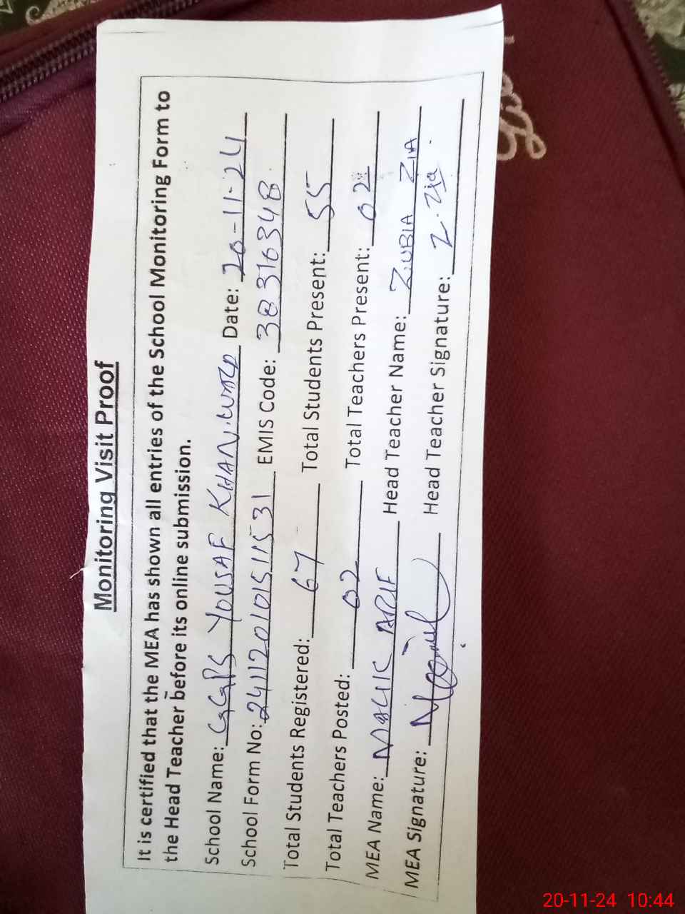 | EMIS Code: 38310348 | Name of School: GGPS YOUSUF KHAN WALA | |||