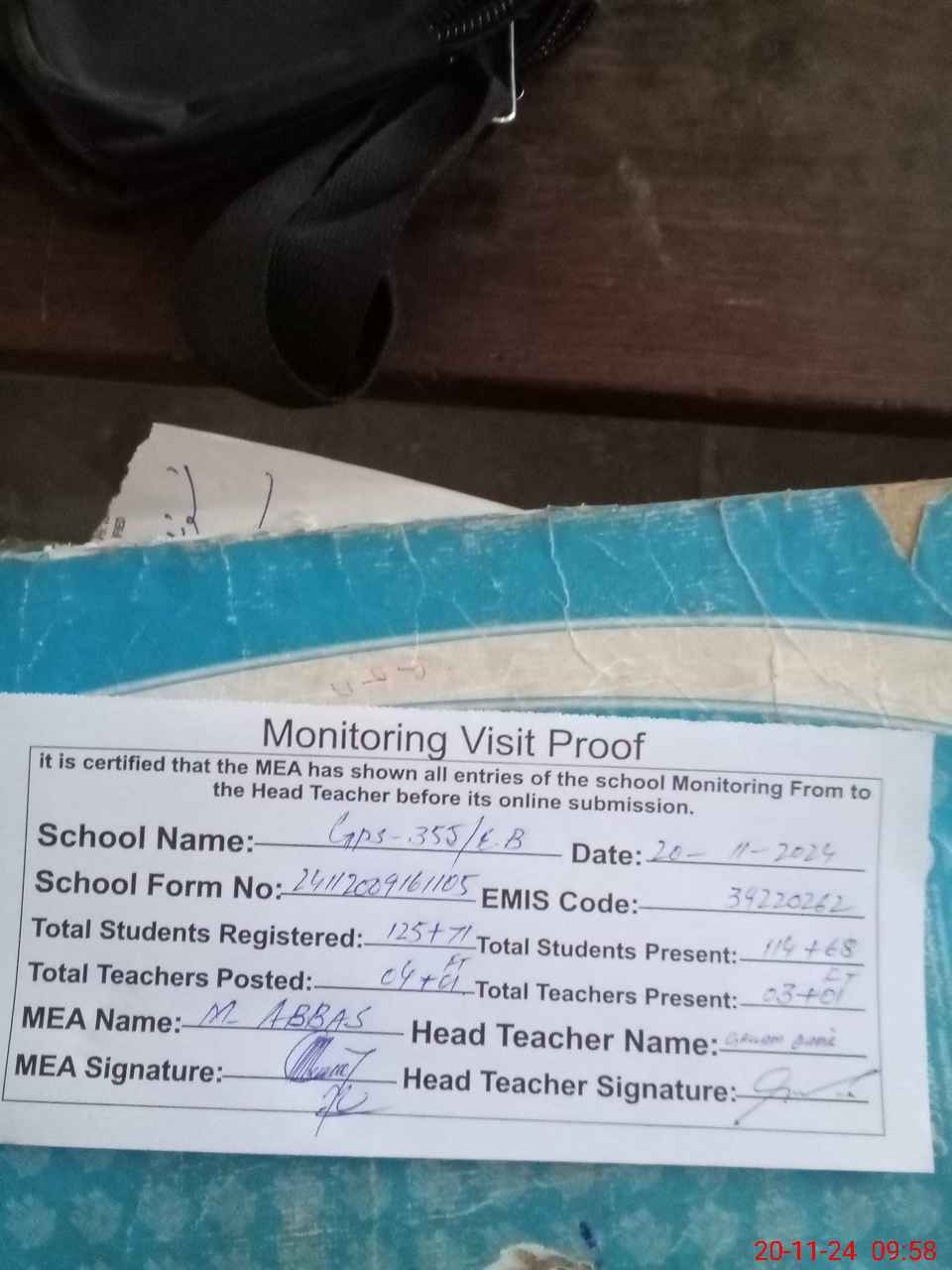 | EMIS Code: 39220262 | Name of School: GPS 355 EB P.O 351 EB | |||