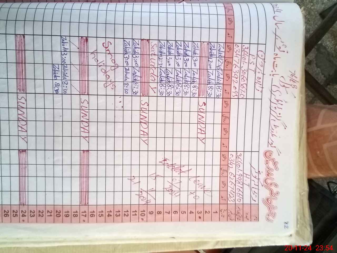 | CNIC | Full Name | Designation | R/C | Absence During Last Calender Month |