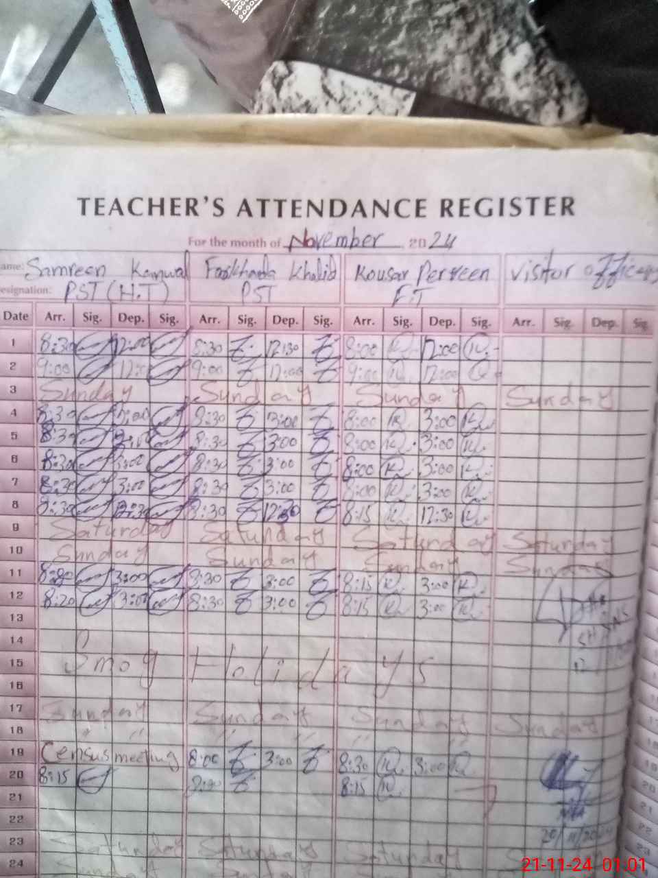 | Name: SA**** KA**** Designation: (School Headmaster's/Headmistress's) PST Phone/Cell Number: 03**** |