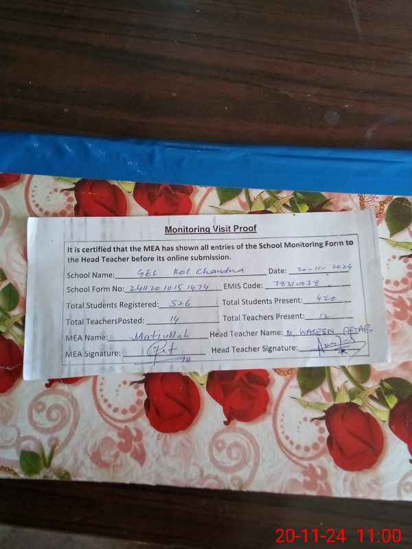 | EMIS Code: 38310038 | Name of School: GES KOT CHANDNA | |||