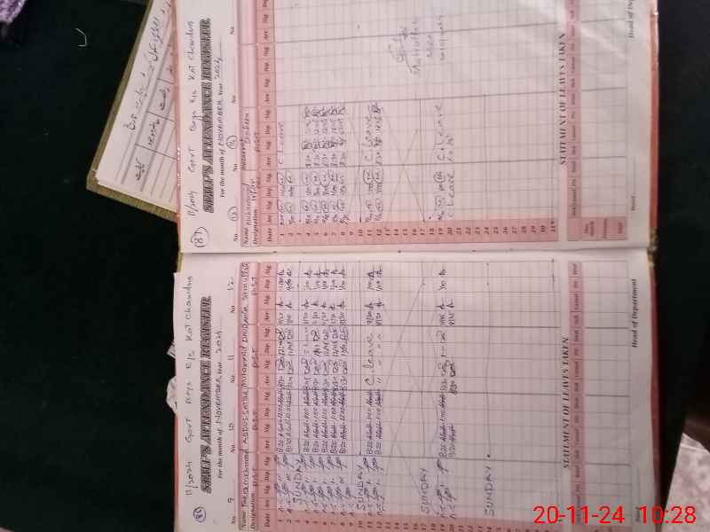 | CNIC | Full Name | Designation | R/C | Absence During Last Calender Month |
