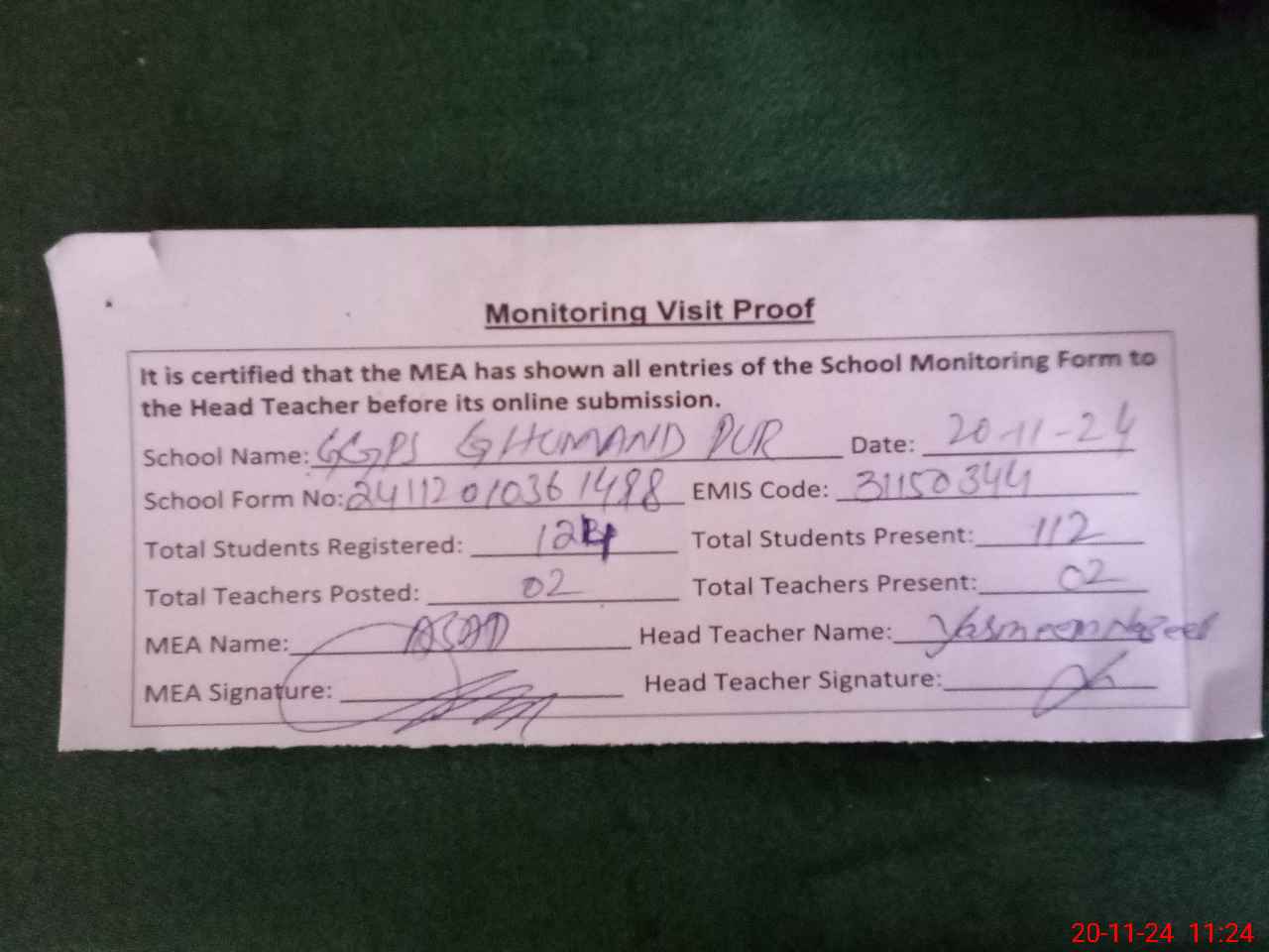 | EMIS Code: 31150344 | Name of School: GGPS GHUMAND PUR | |||