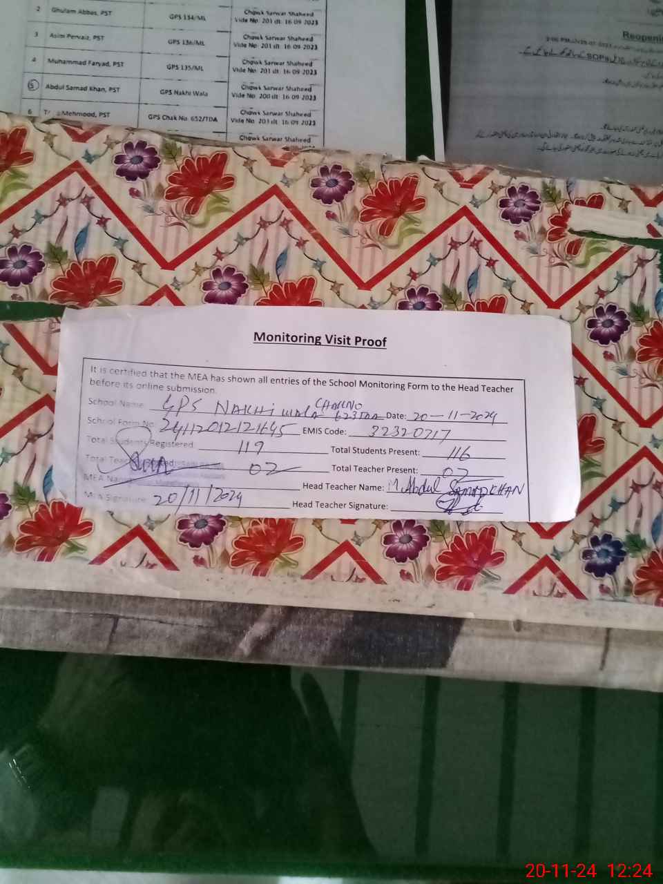 | EMIS Code: 32320317 | Name of School: GPS NAKHI WALA (CHAK NO. 623/TDA) | |||