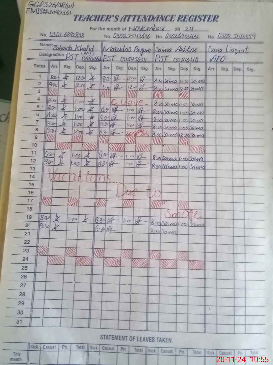 | Name: ZO**** KH**** Designation: (School Headmaster's/Headmistress's) PTC/JV Phone/Cell Number: 03**** |