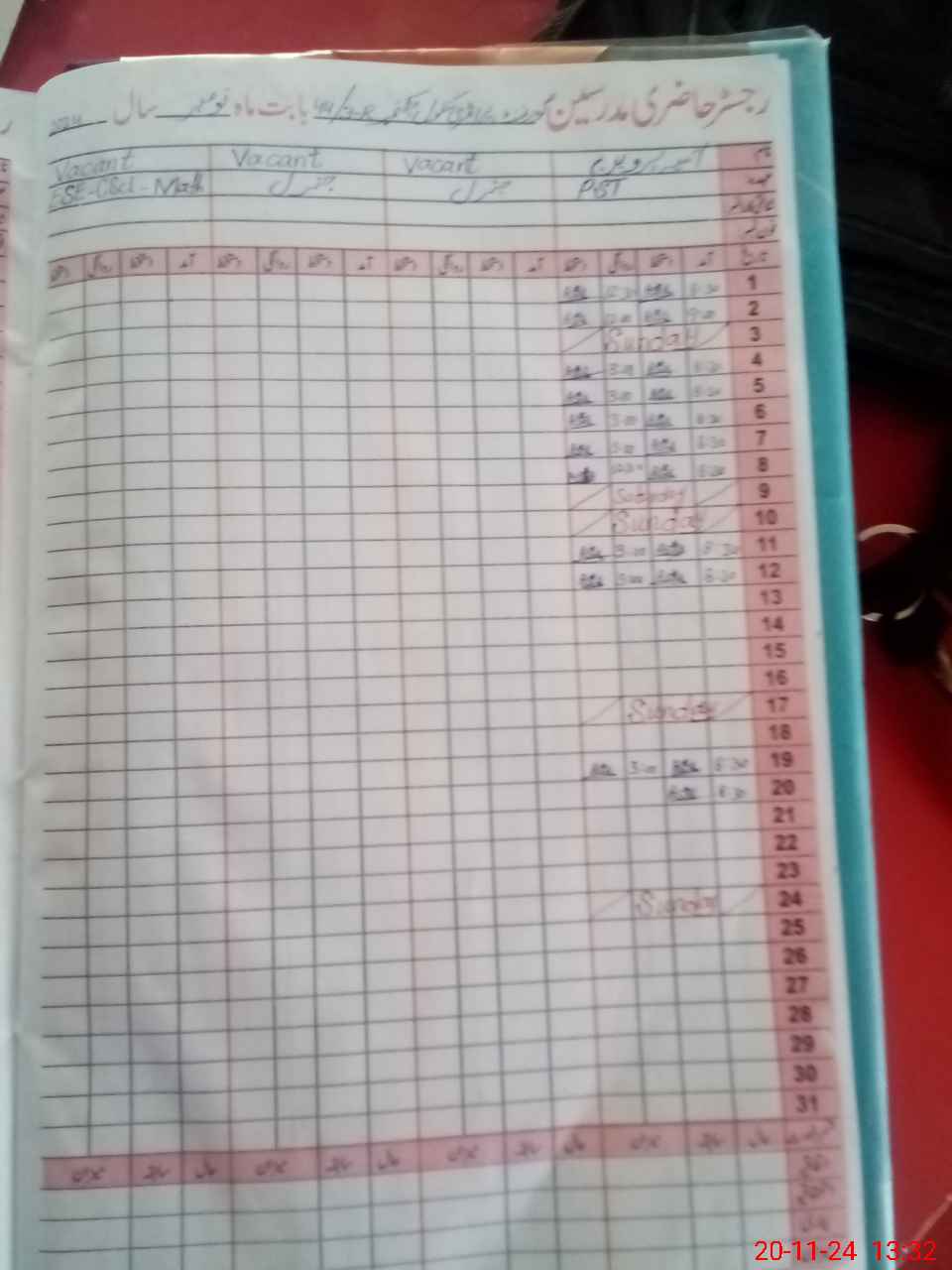 | CNIC | Full Name | Designation | R/C | Absence During Last Calender Month |